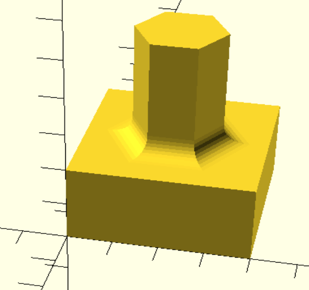 design= union(plate, tower,fn=10,r=5)